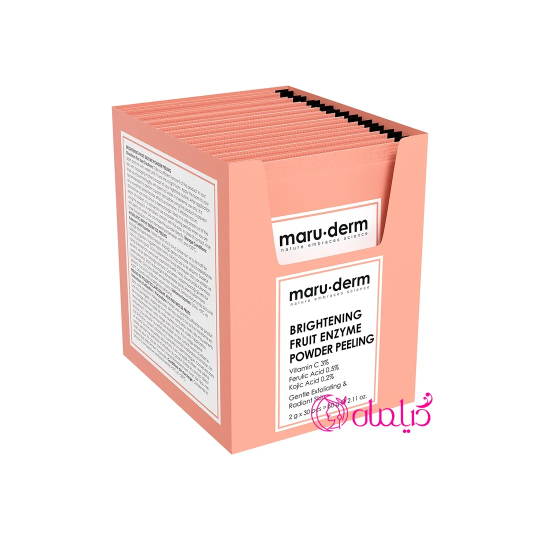 اگر پوستتان کدر، لکدار یا ناهموار است و به دنبال یک لایه بردار ملایم و روشنکننده قوی هستید، پودر روشن کننده آنزیم میوه مارودرم یکی از بهترین محصولات برای دستیابی به پوستی درخشان و یکنواخت است. این پودر نوآورانه با فرمولاسیون پیشرفته، حاوی آنزیمهای طبیعی میوه (پاپاین از پاپایا) به همراه ویتامین C پایدار (3%)، اسید کوجیک و اسید فرولیک است که لایهبرداری شیمیایی ملایم انجام میدهد و همزمان پوست را روشن و شفاف میکند. مناسب برای انواع پوست، به ویژه پوستهای کدر، دارای لکهای تیره، هایپرپیگمانتاسیون و حتی حساس.